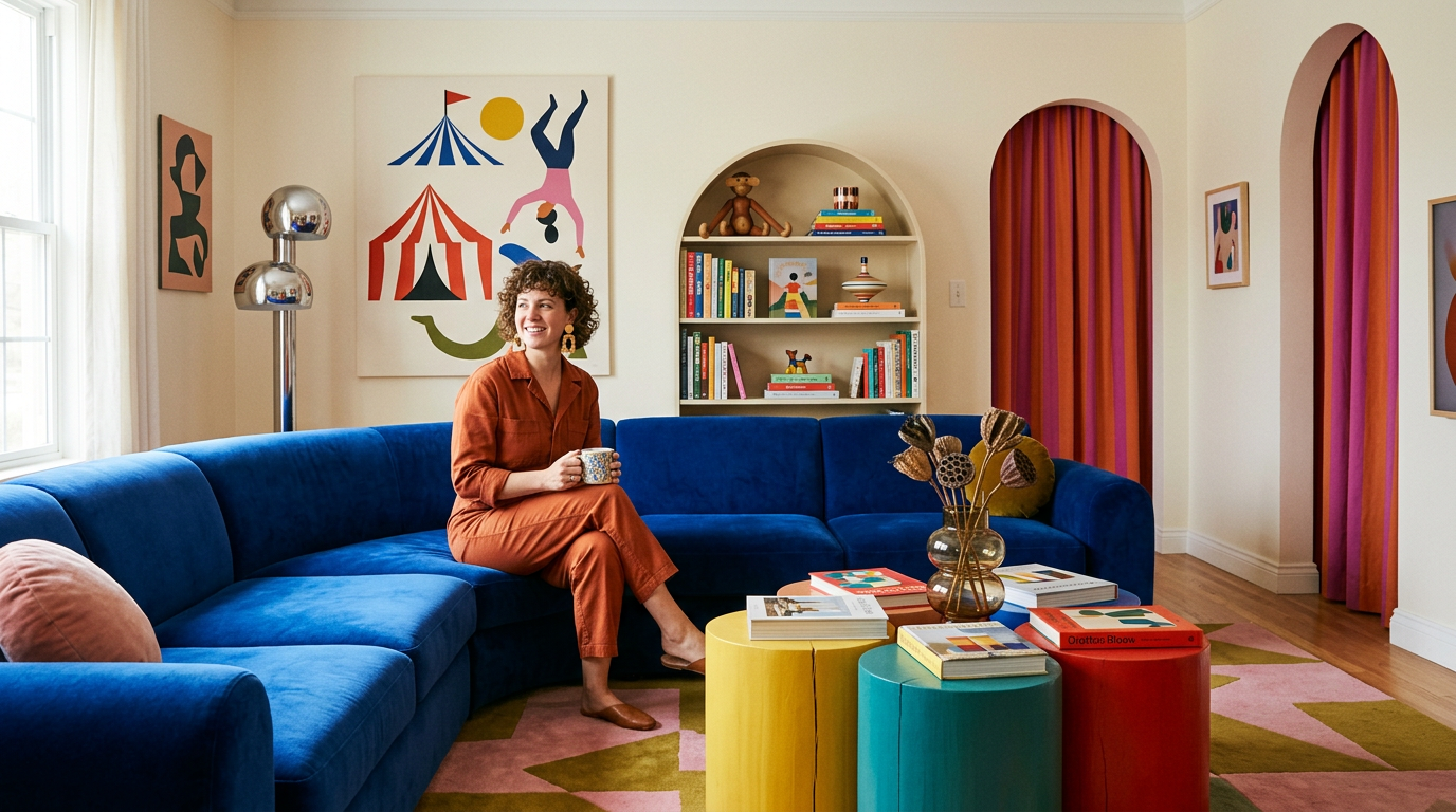 The most important FunHaus rule? Have fun. This trend is a rebellion against interiors that feel overly curated or intimidating. Add a quirky lamp, a vintage circus poster, a chair in an outrageous color. If it makes you smile, it belongs in your FunHaus space.